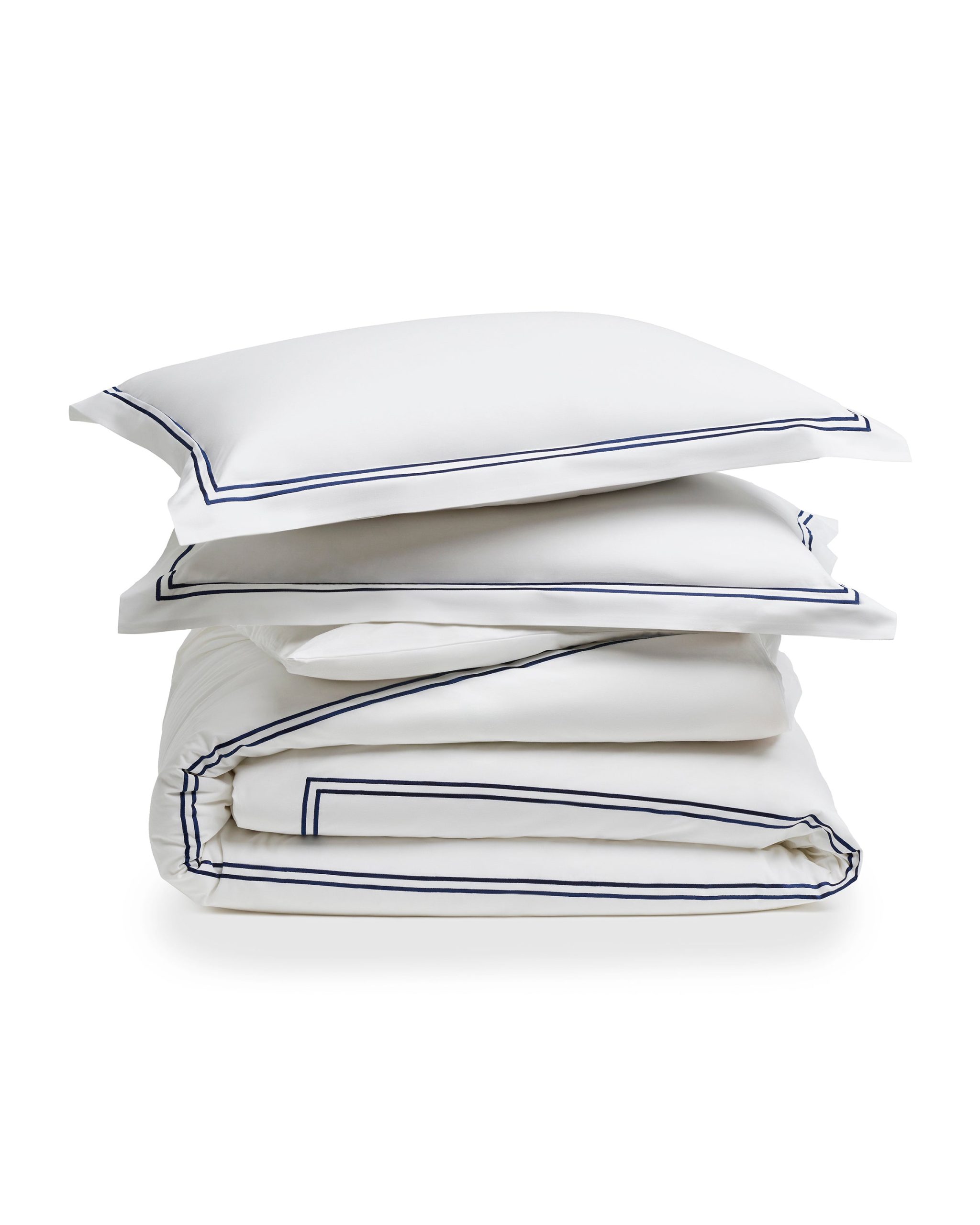 Luxe Premium Percale Duvet Set in White with Navy Piping (Size)